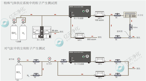 使用在半導(dǎo)體、平板顯示器、太陽(yáng)能電池和其他行業(yè)的產(chǎn)品處理中的許多原材料氣體是有毒、易燃、腐蝕性和活躍性的。比如這些氣體會(huì)和水汽發(fā)生反應(yīng)從而輕易產(chǎn)生顆粒物。控制這些反應(yīng)從而抑制粒子在特殊氣體中的污染是很有必要的。