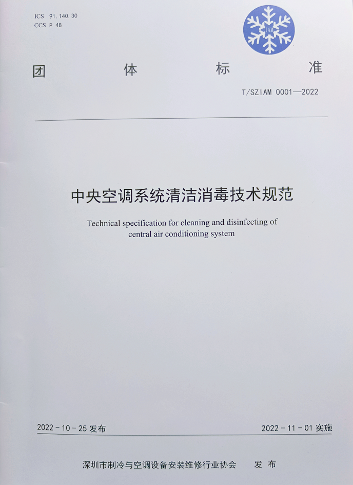 近日,由深圳市制冷與空調(diào)設(shè)備安裝維修行業(yè)協(xié)會(huì)(簡(jiǎn)稱深冷協(xié))主導(dǎo)發(fā)起、深圳市億天凈化技術(shù)有限公司參編的《中央空調(diào)系統(tǒng)清潔消毒技術(shù)規(guī)范》T/SZIAM0001-2022團(tuán)體標(biāo)準(zhǔn)正式發(fā)布實(shí)施。該標(biāo)準(zhǔn)主要對(duì)中央空調(diào)系統(tǒng)的清潔和消毒提出了一整套完整的專業(yè)技術(shù)規(guī)范、標(biāo)準(zhǔn)以及相關(guān)的具體操作流程、作業(yè)方法等,對(duì)中央空調(diào)系統(tǒng)乃至整個(gè)制冷行業(yè)的清潔消毒技術(shù)的發(fā)展具有非常重要的意義。