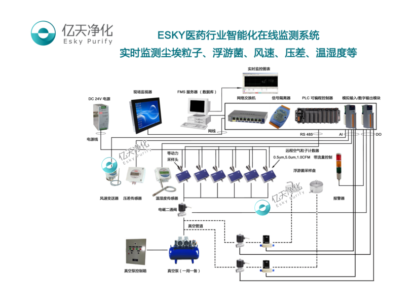 深圳億天凈化提供的ESKY智能化在線監測系統,使用符合FDA 21 CFR Part11的專業制藥監控軟件,符合美國FDA、歐洲GMP、中國新版GMP對無菌藥品生產的相關規范,為制藥企業進行FDA、歐盟GMP、中國新版GMP認證提供可靠的數據支持。