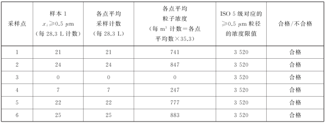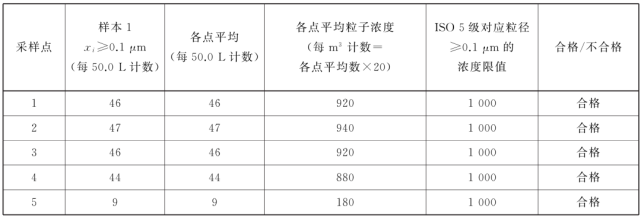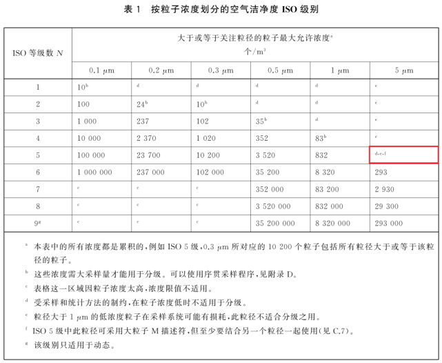 表中所有濃度都是累積濃度,例如ISO5.5 級,0.5μm 粒徑的11100 顆中,包括所有粒徑大于或等于該粒徑的粒子。
