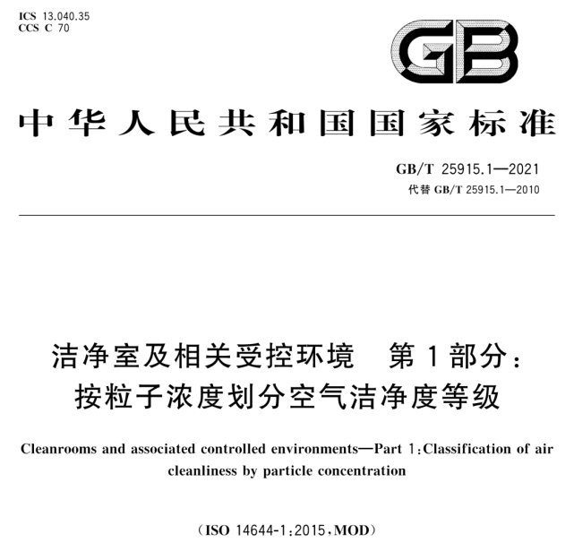 近日,國家標準委發(fā)布了GB/T 25915.1-2021《潔凈室及相關受控環(huán)境-1:空氣潔凈度等級》,該文件修改采用ISO 14644-1 :2015《 潔凈室及相關受控環(huán)境第1 部分: 按粒子濃度劃分空氣潔凈度等級》,將代替 GB/T 25915 .1-2010 《潔凈室及相關受控環(huán)境第1部分:空氣潔凈度等級》,于2022年3月1日實施!