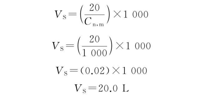 文件給出了確定單次采樣量和各點的采樣時間的方法:所選最大粒徑的粒子濃度恰好為規(guī)定的ISO 級別上限時,在各采樣點所采的空氣量足以檢測到至少20個粒子。每個采樣點的單次采樣量VS,按公式(A.2)計算。
