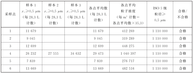 注:粒子計數(shù)器的采樣流量為0.0283 m3/min(28.3L/min或0.47L/s)。